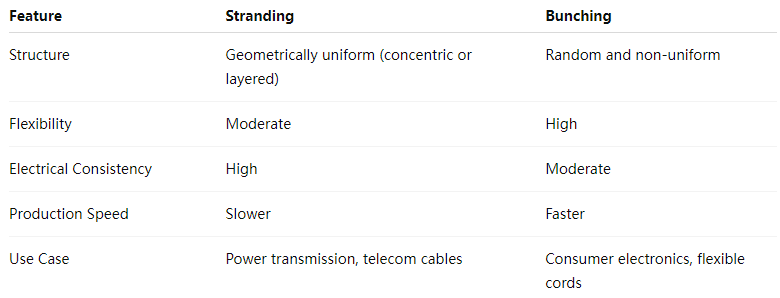 Bunching, on the other hand, involves randomly twisting wire strands together without a strict geometric layout. This method is faster and typically used when flexibility is more important than structural uniformity.